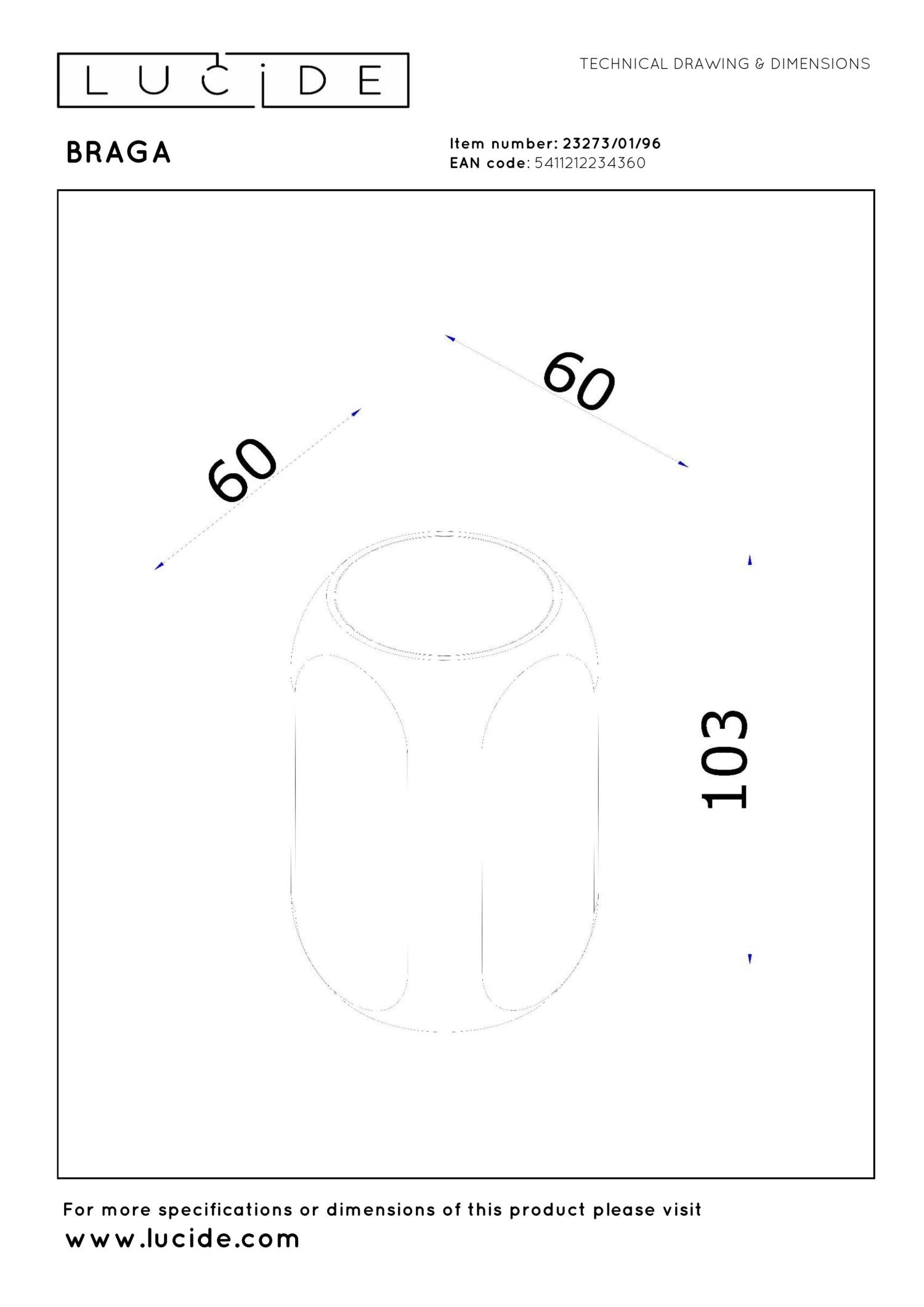• Verbruik: 1x5W / 230V / Dimbaar (lichtbron niet inbegrepen)