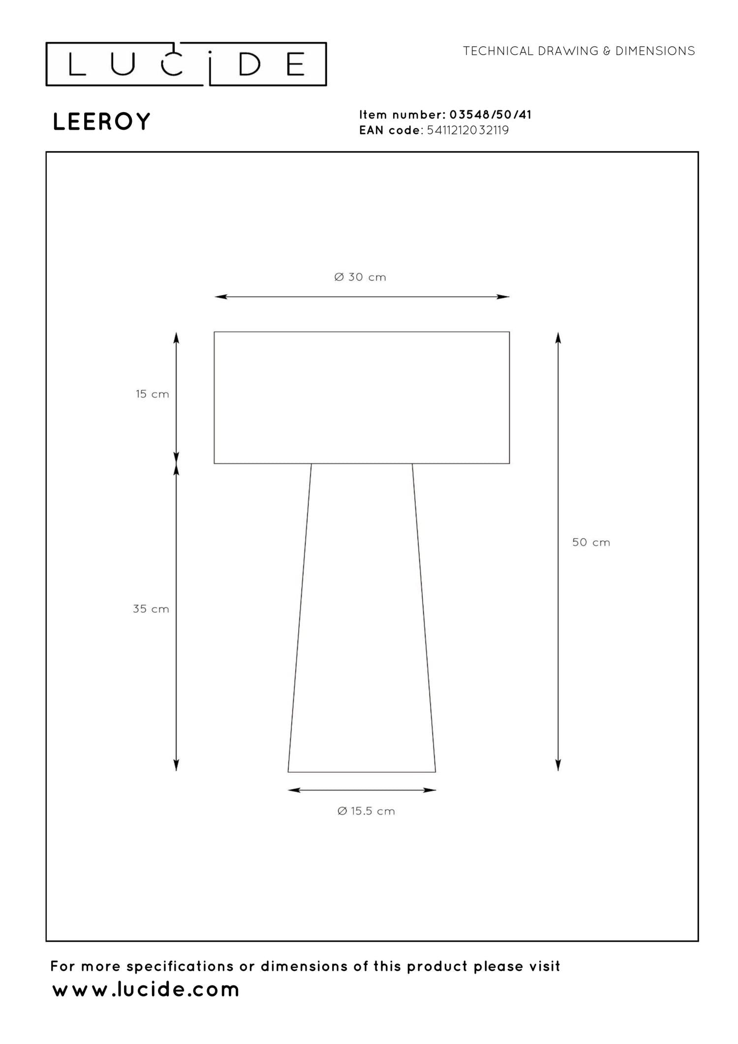 Leeroy is een absolute eyecatcher met zijn moderne, ronde ontwerp en uitvoering in textiel. Op een bijzettafel of nachtkastje geeft deze tafellamp de hele kamer een zachte uitstraling. Zowel de cilindrische kap als de kegelvormige voet zijn met hoogwaardig linnen bekleedt, waardoor Leeroy een warm licht door de kamer verspreidt. Bedienbaar met de schakelaar op het snoer, is Leeroy ideaal als nachtlampje. Deze tafelverlichting maakt je woonkamer of slaapkamer compleet en laat je dromen van gezellige ochtenden en warme, intieme avonden.