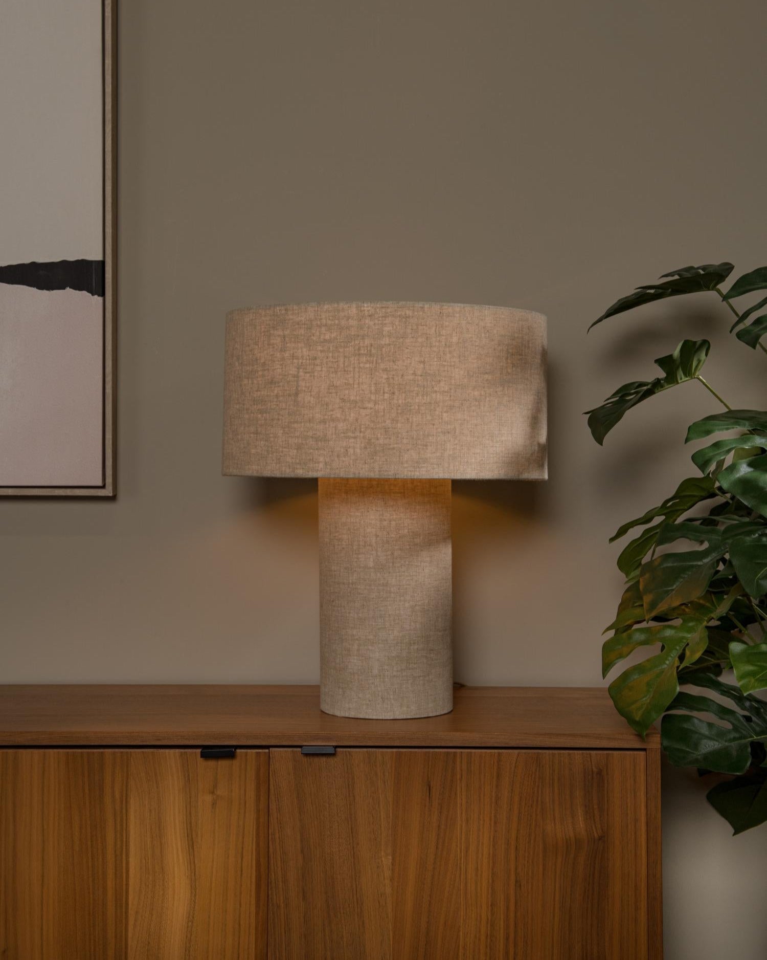 Zacht, rond en warm? Jazeker, we hebben het over Leeroy! Deze opvallende tafellamp trekt de aandacht door zijn eigentijdse, cilindrische ontwerp en uitvoering in hoogwaardig linnen. Zowel de ronde kap als voet zijn bekleed met textiel waardoor Leeroy een warm licht door de kamer verspreidt. Bedienbaar met de schakelaar op het snoer, is Leeroy ideaal om als nachtlamp je kamer een tijdloos karakter te geven. Deze tafelverlichting maakt je woonkamer of slaapkamer compleet en laat je dromen van gezellige ochtenden en warme, intieme avonden.
