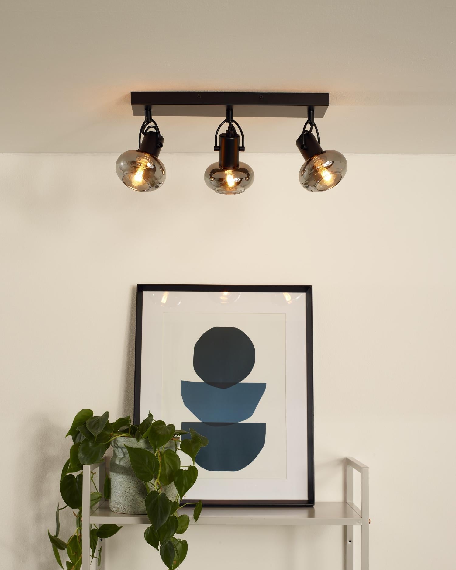 Een moderne plafondspot hoeft niet altijd superstrak te zjin. De combinatie van metaal en glas zoals bij Madee bewijst dat. Een koud en warm materiaal gaan hand in hand en dat straalt met deze plafondspot af op je interieur. Bovendien heb je met de drie lichtpunten, die volledig kantelbaar en draaibaar zijn, voldoende mogelijkheden om de plekken die jij wil te verlichten. En dat kan zeer energiezuinig, in combinatie met ledlampen. Het hoeven zelfs geen spotjes te zijn. Je kan deze lamp ook aansluiten op een dimmer voor extra sfeer in huis. Met de bevestigingsplaat monteer je de spot bovendien eenvoudig aan het plafond. Meteen klaar voor gebruik.