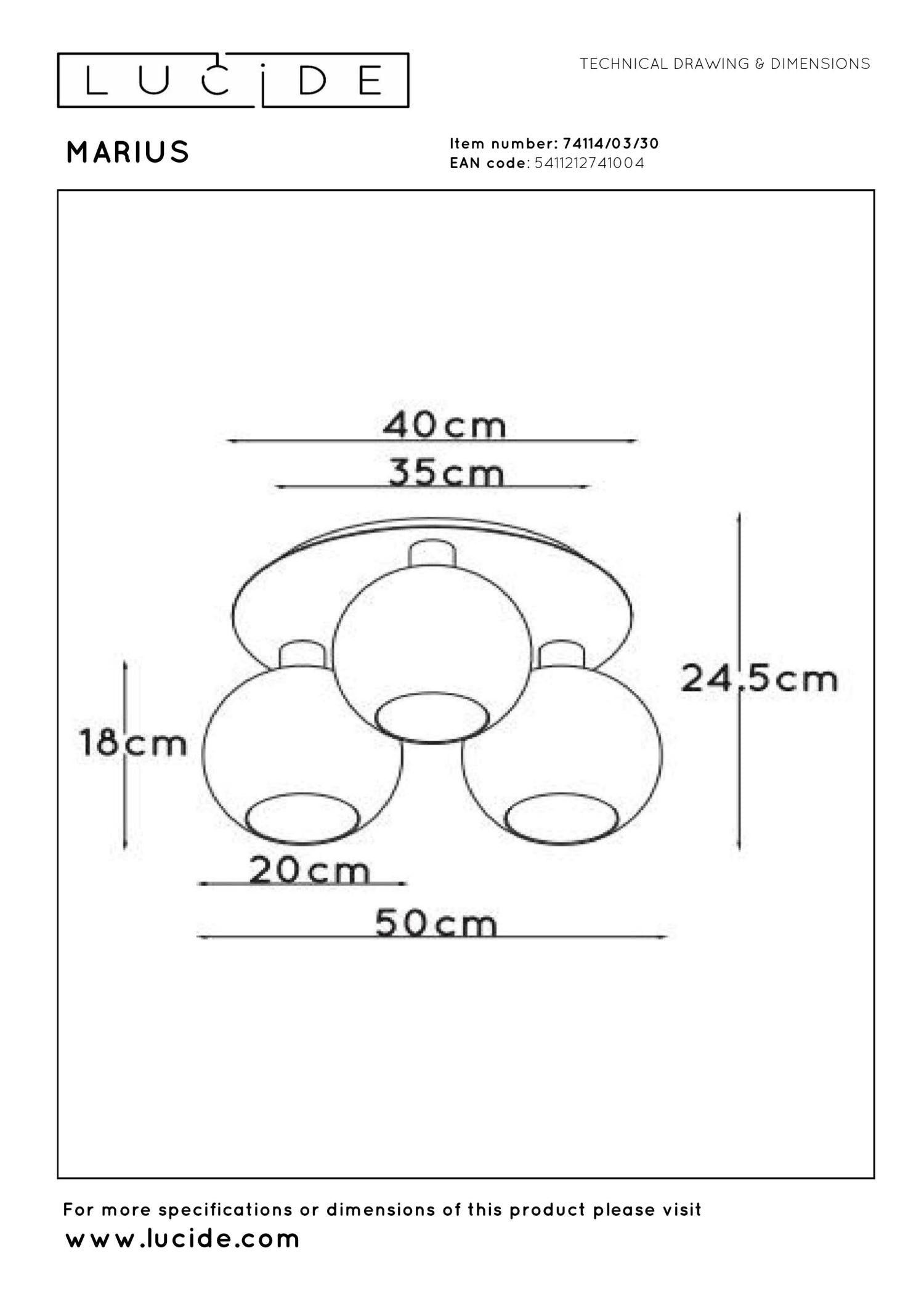 • Verbruik: 3x60W / 230V / Dimbaar (lichtbronnen niet inbegrepen)