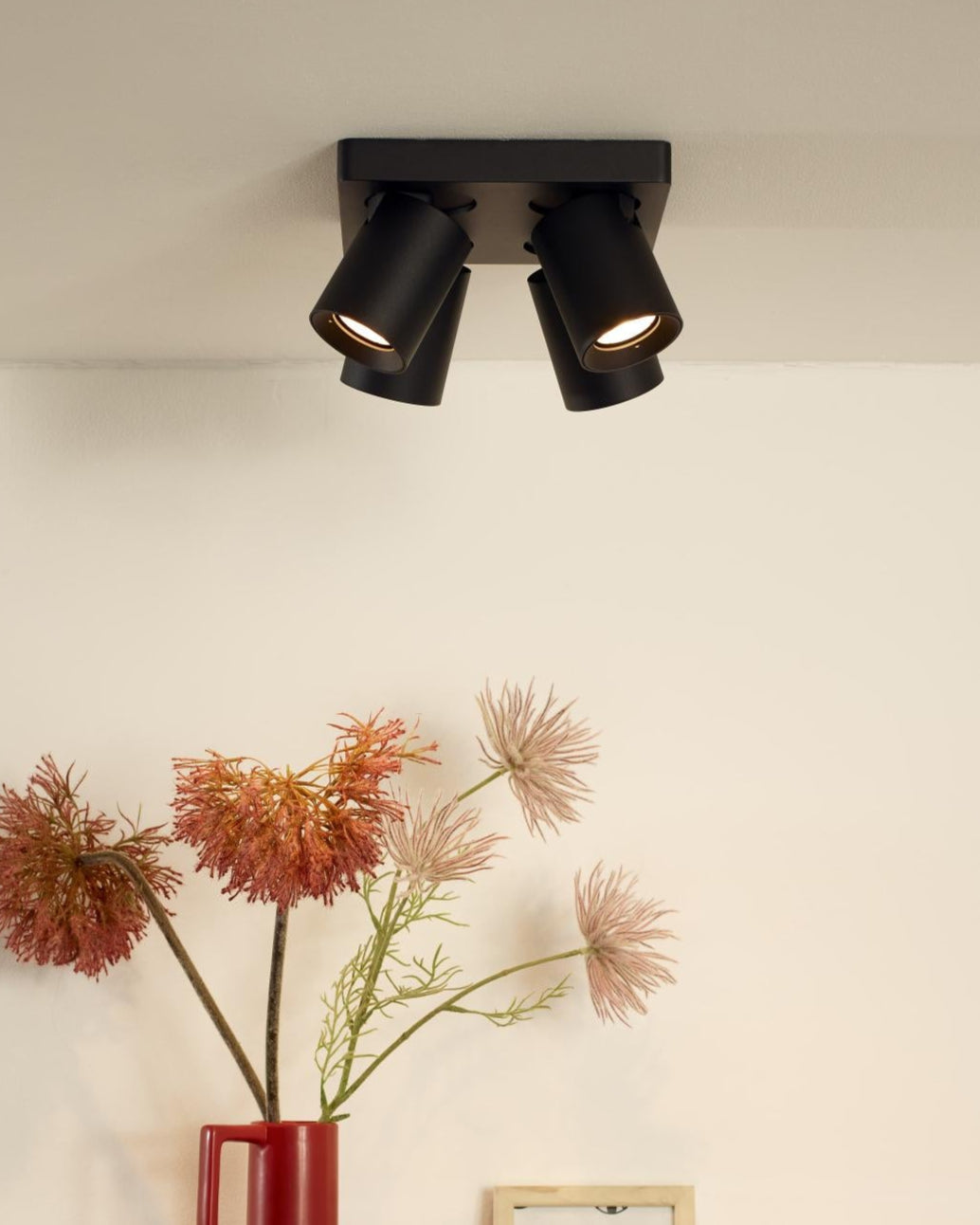 Dit is Nigel, een plafondspot compatibel met vier GU10 dim to warm ledlichtbronnen. Deze geven licht van 2200 tot 3000k. Een eenvoudig en tijdloos ontwerp met een cilindervormige lampenkap zodat de spot zich in allerlei interieurstijlen thuis voelt. Nigel is zowel in het zwart als wit beschikbaar. En met verschillende lichtpunten. De witte variant kreeg een accent mee door de binnenzijde van het armatuur in het zwart te kleuren. De plafondspot is gemaakt uit aluminium en is 12 centimeter hoog. Bevestig Nigel aan het plafond, sluit aan op een compatibele dimmer, draai en kantel de spots naar keuze en geniet.