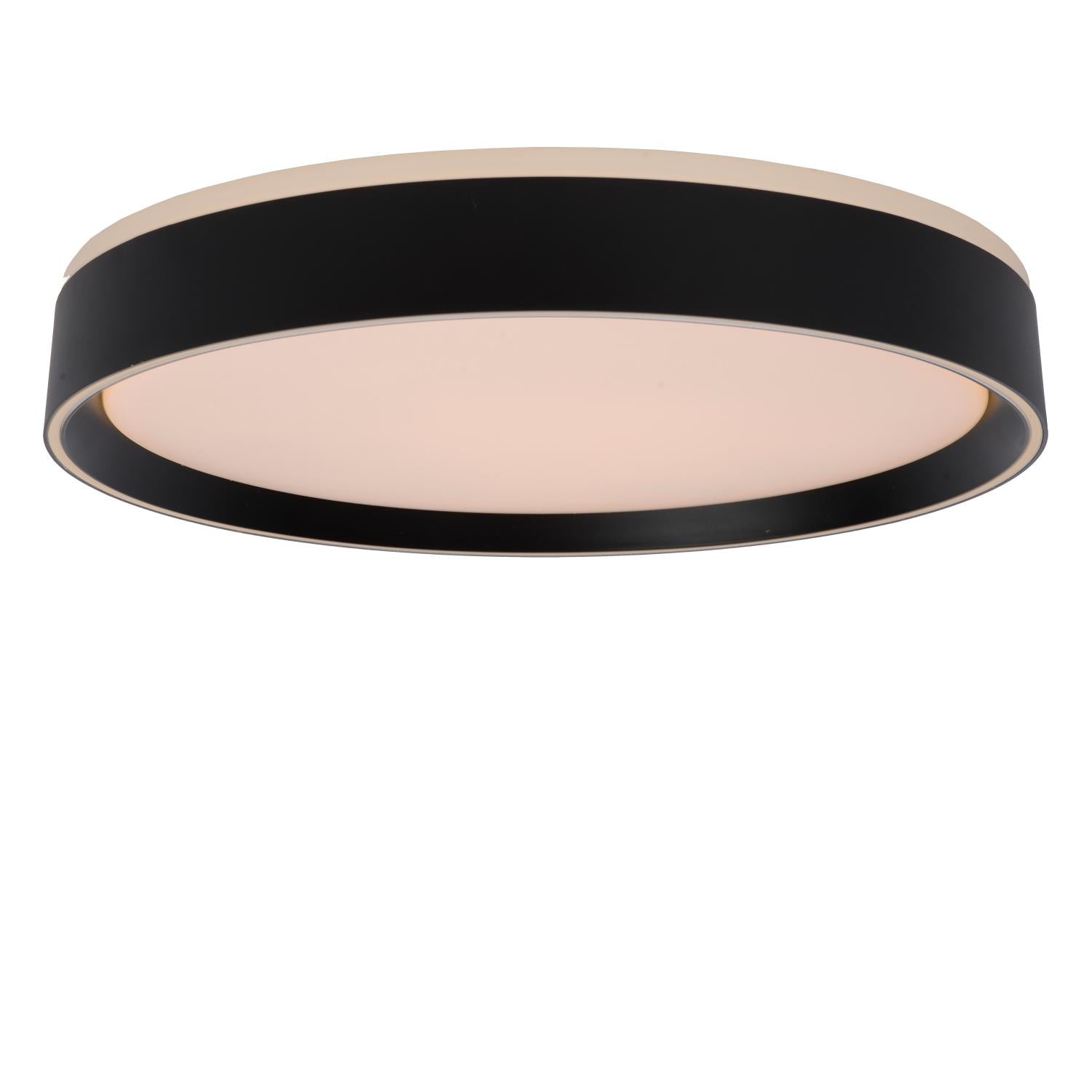 Donker in dialoog met licht, letterlijk en figuurlijk. Deze plafonnière, genaamd Nuria, speelt gretig met die tegenstelling. Als een zon, omringd door een schaduwrand. Het kunststoffen armatuur hangt op aan een metalen bevestigingsplaat. De geïntegreerde ledlamp is dimbaar. Je kiest, eenvoudigweg via de wandschakelaar, tussen drie lichtintensiteiten en daarmee ook tussen drie sferen. Nuria is met haar doorsnede van 40 centimeter een fijn modern accent voor elk interieur.