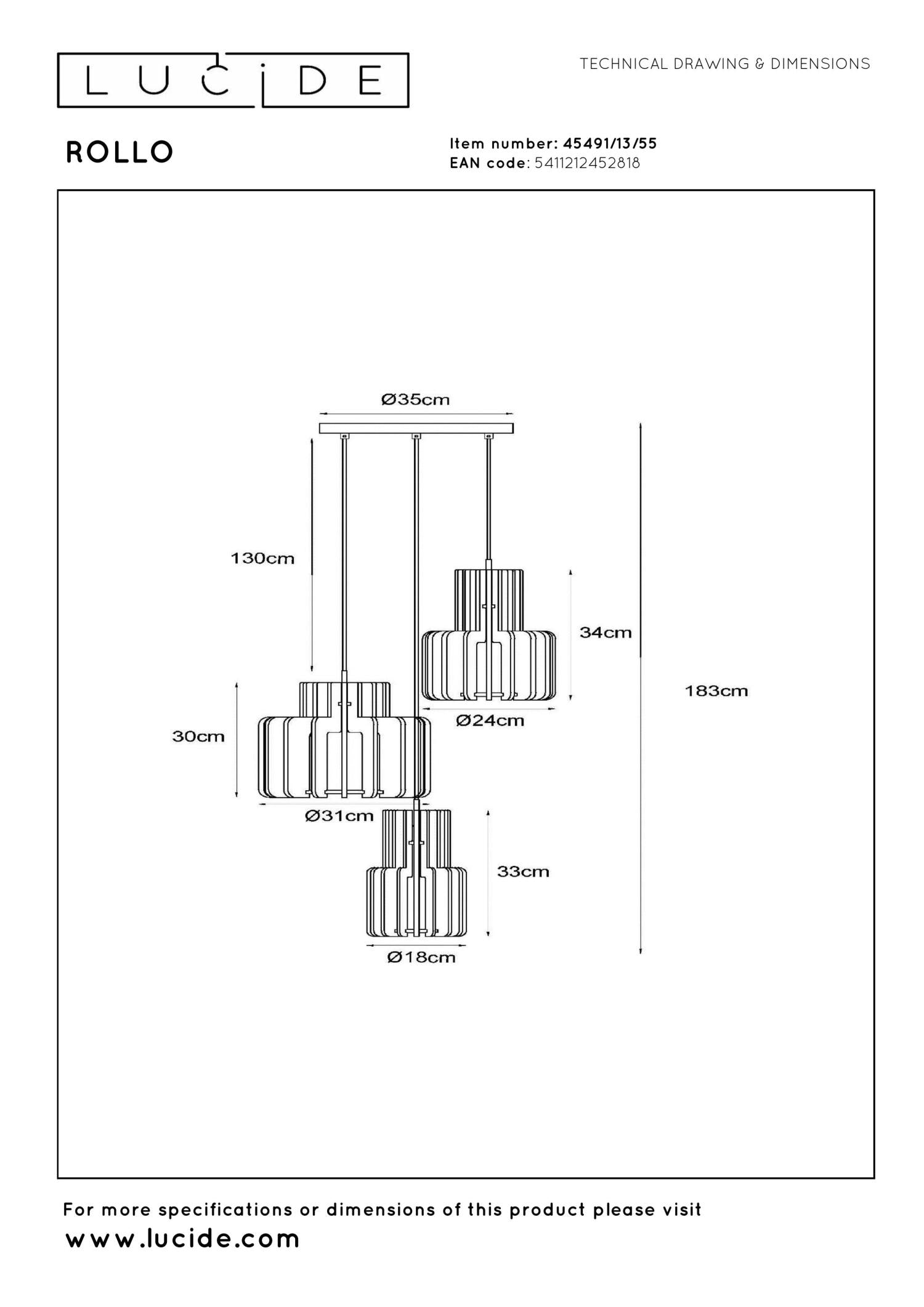 • Verbruik: 3x40W / 230V / Dimbaar (lichtbronnen niet inbegrepen)