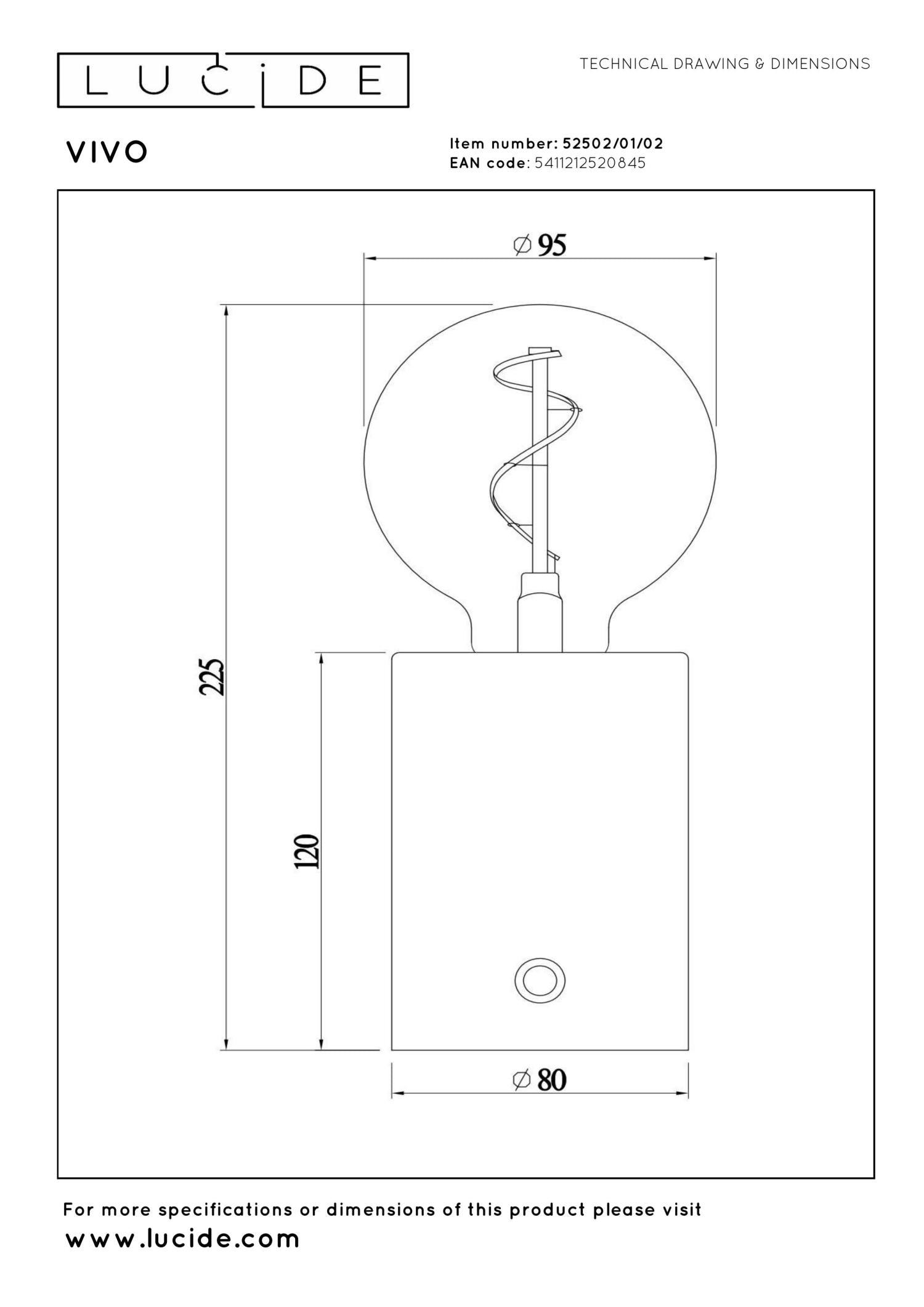 De Lucide VIVO tafellamp biedt stijlvolle en praktische verlichting met een modern design. Met een diameter van 8 cm en een hoogte van 22,5 cm past deze compacte lamp perfect in elke ruimte. de lamp straalt luxe en elegantie uit. Dankzij de ingebouwde accu geniet je tot wel 6 branduren zonder kabels. De lamp is uitgerust met een dimbare LED-lichtbron van 2700K, bedienbaar via een touchsensor. Een prachtige keuze voor sfeer en functionaliteit!