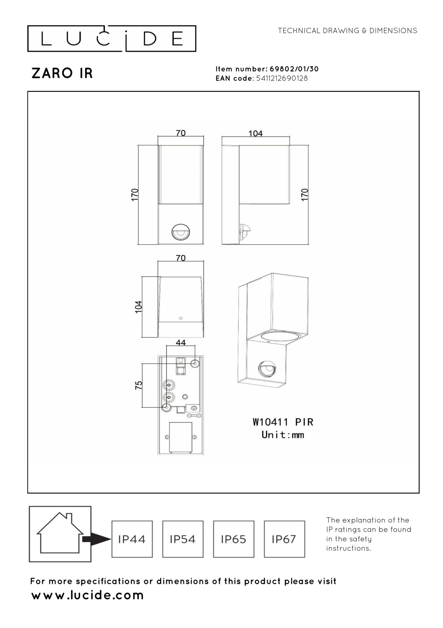 Een buitenlamp met bewegingssensor geeft je een veilig gevoel en helpt je snel je huissleutel vinden als je in het donker thuiskomt. Maar Zaro IR is zoveel meer: deze compacte, moderne wandspot is vervaardigd uit hoogwaardig aluminium en zijn neerwaarts gerichte licht verlicht je gevel, oprit of tuinpad zodat jij nog meer geniet van je buitenruimte. Plaats Zaro IR in serie voor een maximaal effect. De stijlvolle spot is 17 centimeter hoog en 10,4 centimeter breed, en is geschikt voor een ledlichtbron.